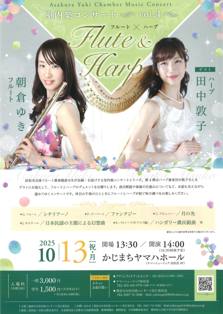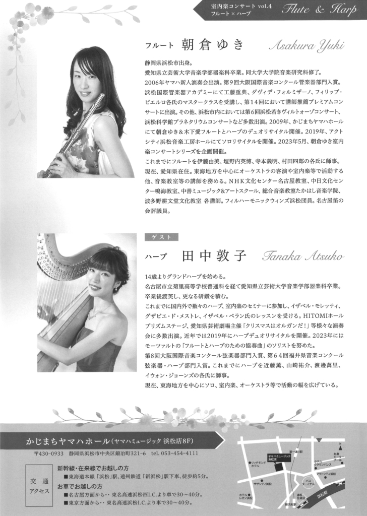 出演:朝倉ゆき(フルート)・【ゲスト】田中敦子(ハープ)