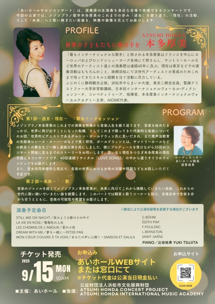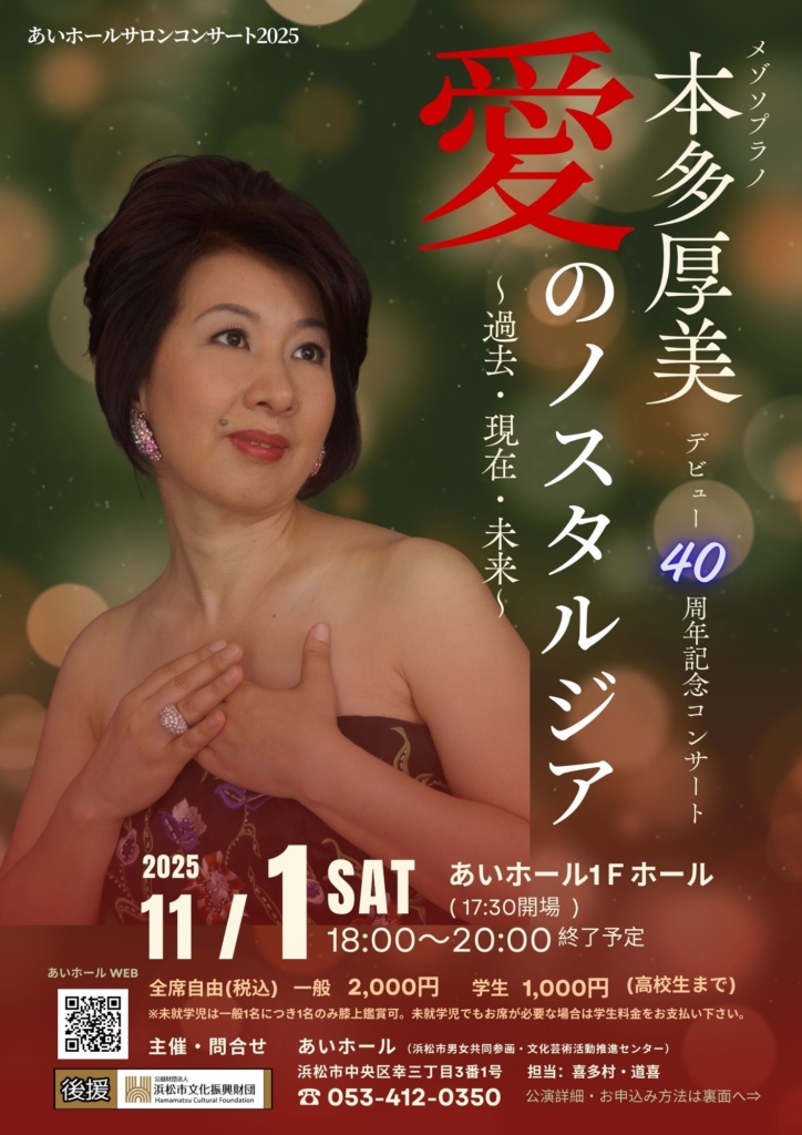本多厚美 あいホールサロンコンサート「愛のノスタルジア〜過去・現在・未来〜」