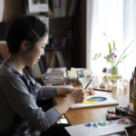 絵を描いたり、それをオブジェやアクセサリーに仕立てたり、ワークショップを開いたり、絵のまわりであれこれ活動しています。色の響き合う時間を大切にしています。